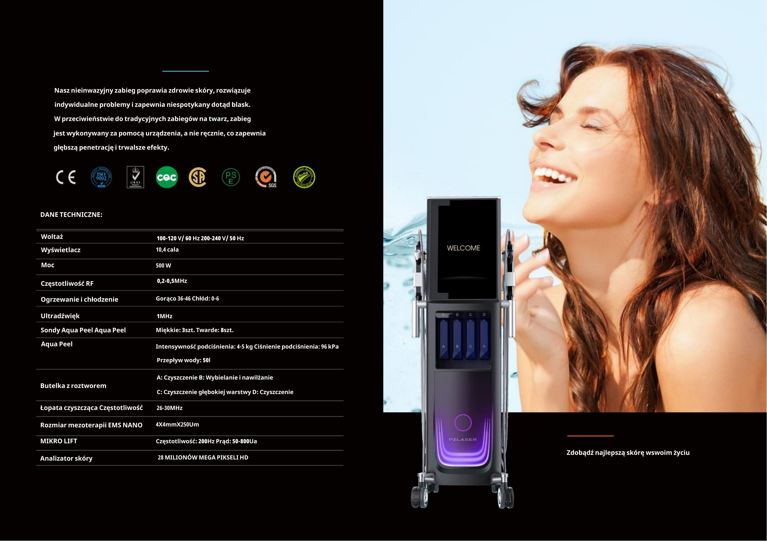 Nowoczesne gabinety nie szukają już pojedynczych technologii. Szukają efektu. Aqua Star to urządzenie, które łączy najczęściej wykonywane zabiegi w jednym systemie - od głębokiego oczyszczania po zaawansowaną pielęgnację anti-aging.