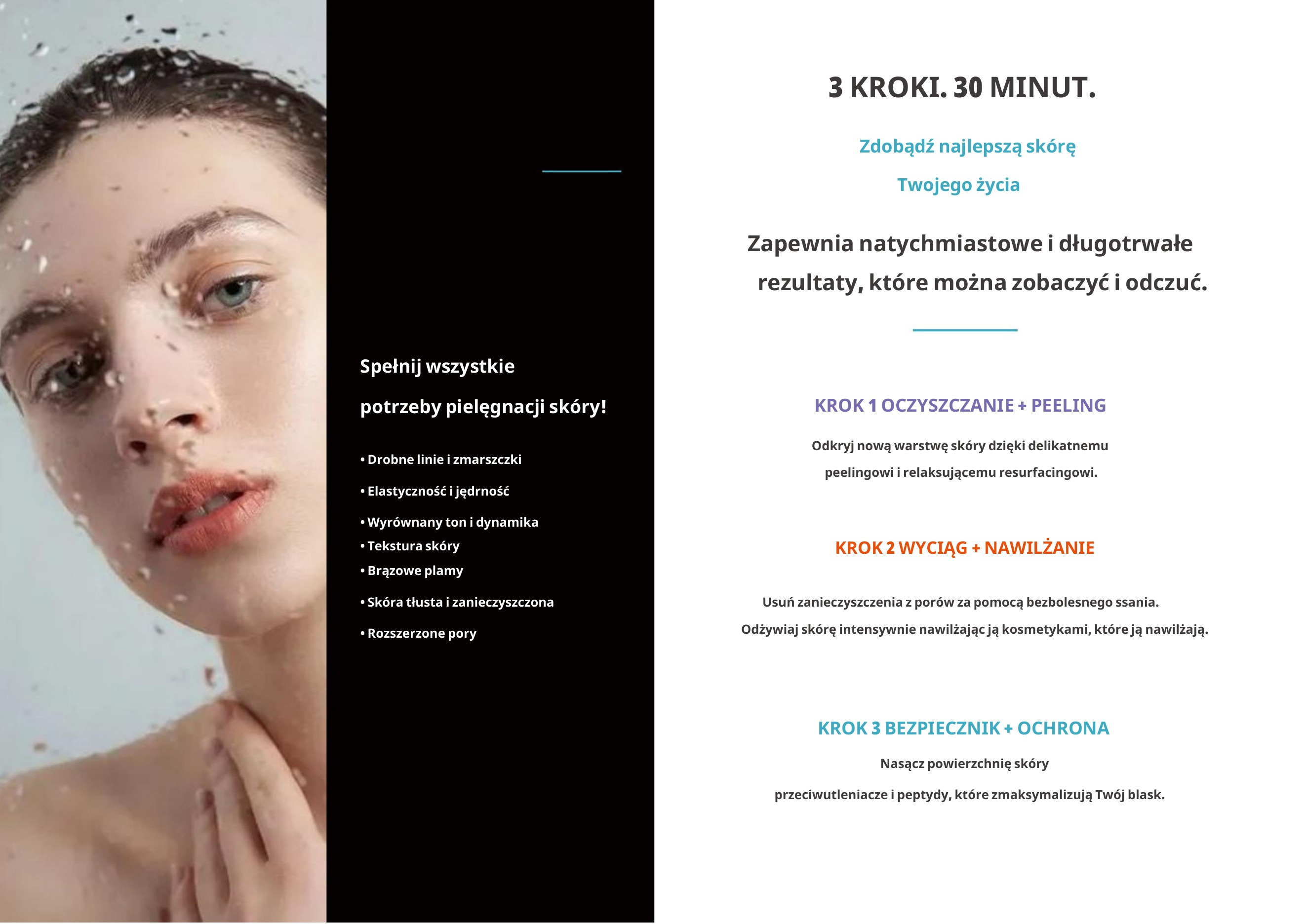 - Hydrafacial - głębokie oczyszczanie + infuzja składników aktywnych.