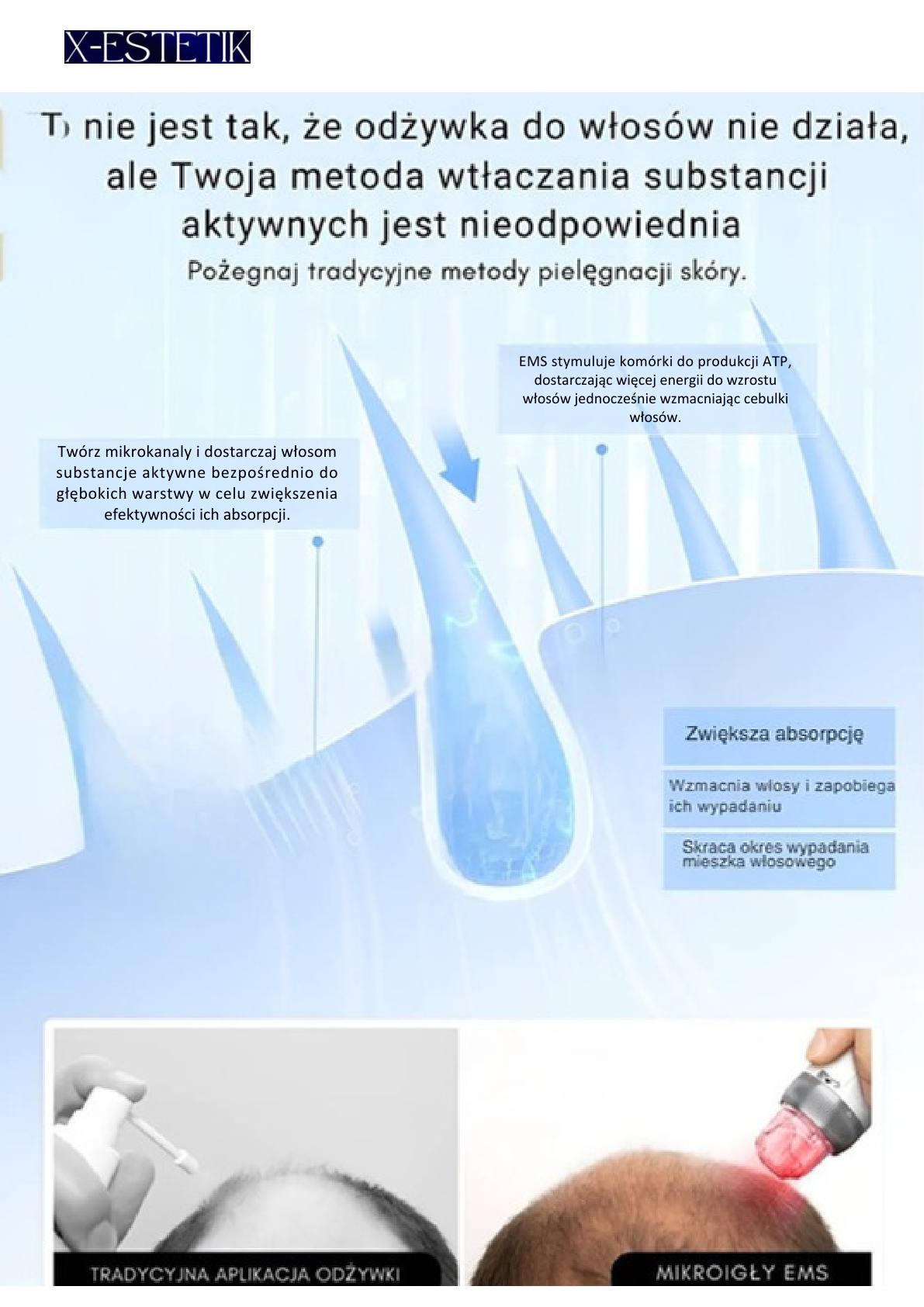 - 3 technologie w jednym: micro‑needling + EMS + LED.